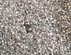 Got some small punchouts from work. We perforate metal for aeration flooring for grain drying. Size is .05″ diameter X .036″ metal thickness. I wonder if it could be used as a projectile as we have thousands of pounds of it every few days.
