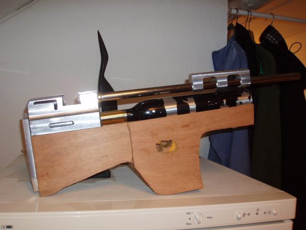 of air. Stock made from glued together sheets of plywood. Total length of gun;